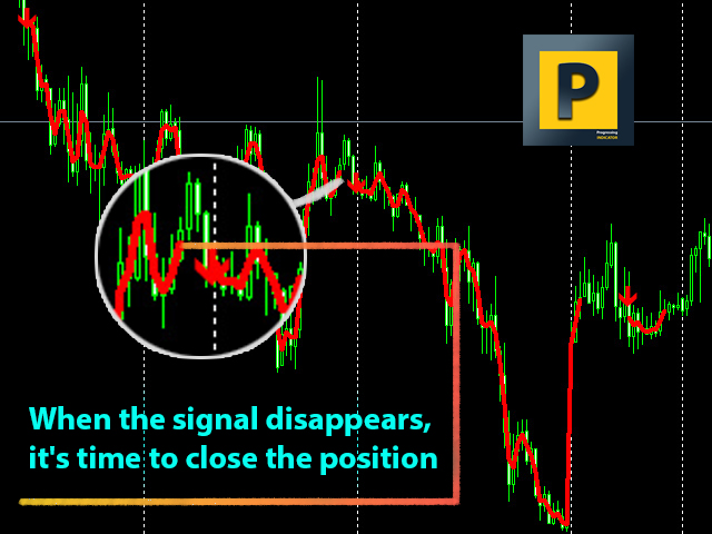- If the indicator line disappears, you'll also receive a notification. This means that the trend is over and you need to get out of the open position. Also at this moment disappears auxiliary visual zone.