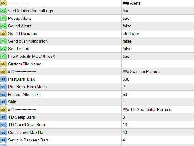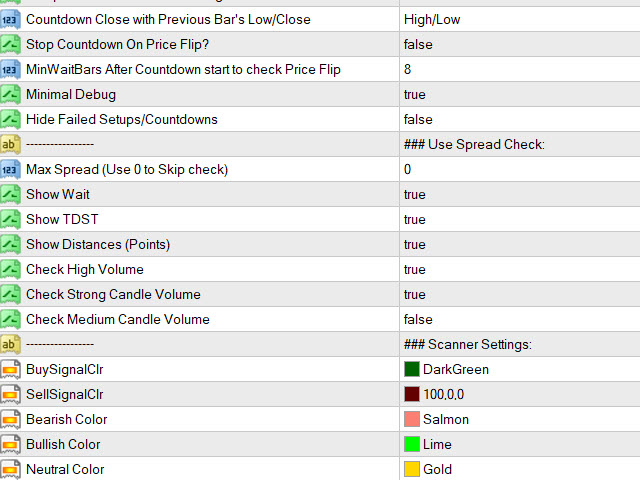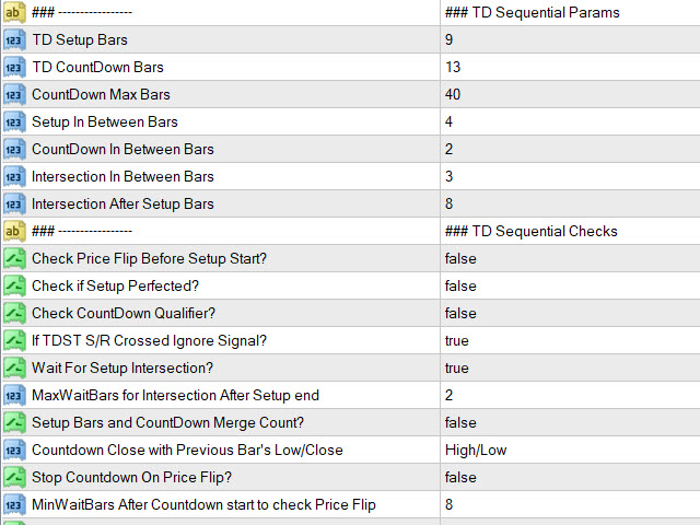 - Set TD Setup (9), Countdown (13) bars and In Between bars (4)