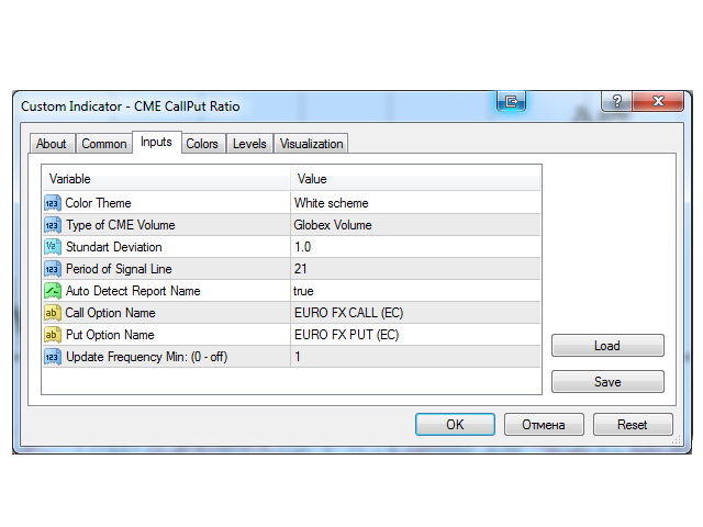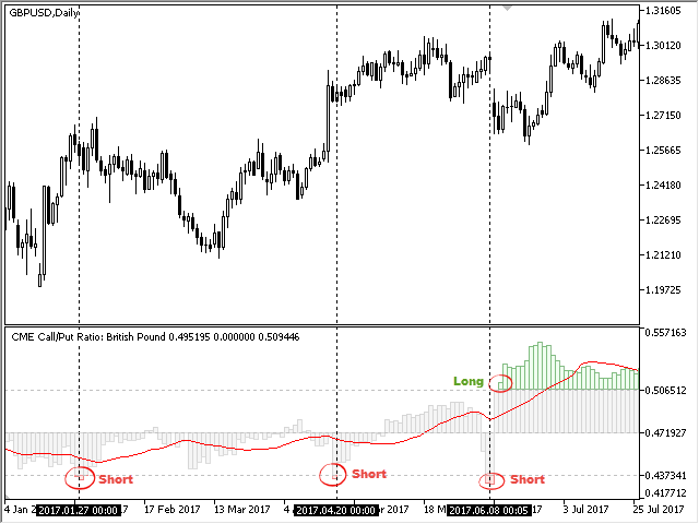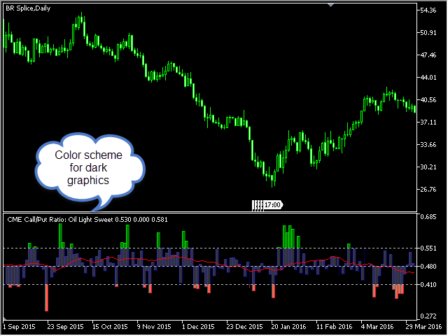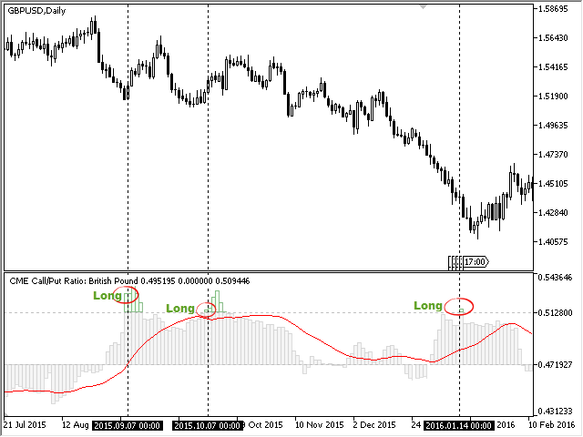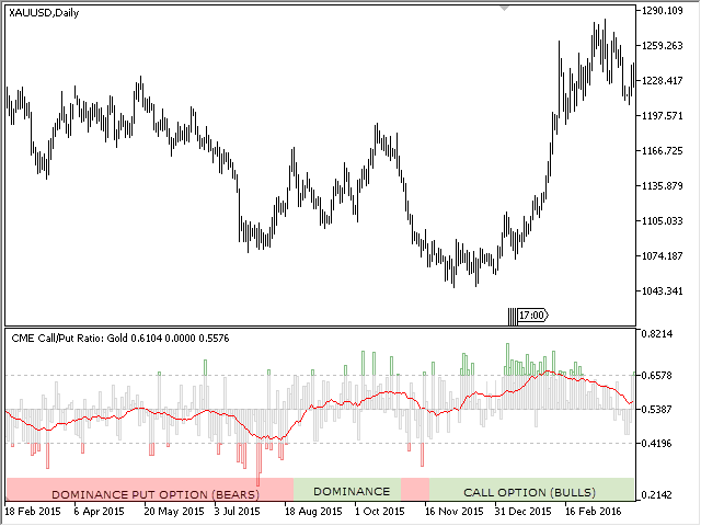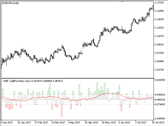 The data on the option volumes ratio are taken from one section of the "daily bulletin" - report of the CME, published weekly. This section is called Daily Volume, it is available as Excel files on the official ftp server of the exchange. To update the data on CallPut Ratio, simply copy the corresponding reports to the indicator folder. Detailed instructions on performing the update can be found in the blog How to update CME reports on your PC . The demonstration mode (during testing) does not require the data, the indicator loads them from its internal memory. However, updating the reports is not possible in the demo version, therefore, the CallPut Ratio is displayed with some delay in this mode. The indicator works on any timeframe, but the data are available only for the daily timeframe; therefore, the suggested working chart period is D1. Nevertheless, the volumes of the current trading day are always available. They are updated several times during the trading session.