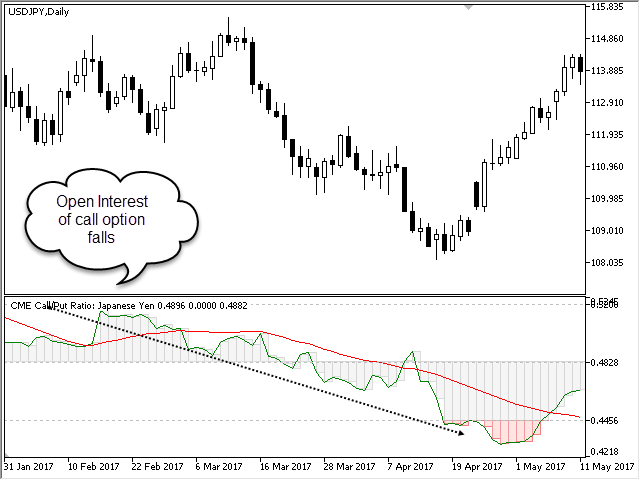 Any market is characterized by a frequent change of states: after a rapid growth, there is a period of active selling, and on the contrary, a strong selling may be followed by an inexplicable period of growth. Call Put Ratio identifies the change of these phases and shows you when you can open a long or short position. Buy when CallPut Ratio goes into the green zone, provided that it was in the red one a few bars ago. On the contrary, sell when the indicator has moved to the red zone from the green one. You can also follow the signal of the red signal line: buy when its fall is replaced by growth, and sell when its growth is replaced by fall.