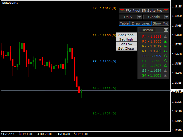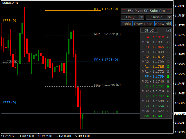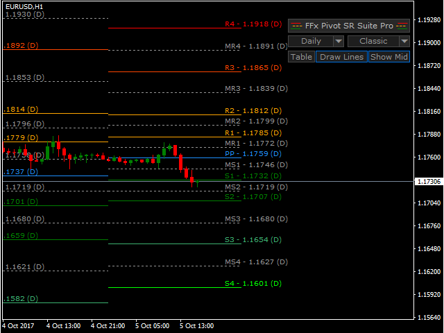 FFx Pivot SR Suite PRO is a complete suite for support and resistance levels. Support and Resistance are the most used levels in all kinds of trading.