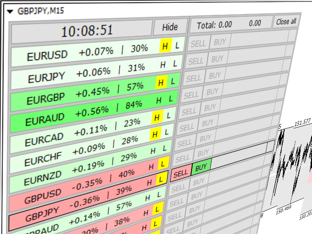The app is automatically synchronized with the standard Market Watch window in MetaTrader 4 where you can set custom list with symbols in any specific order.