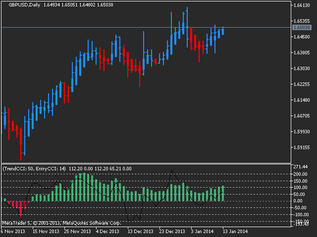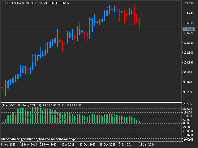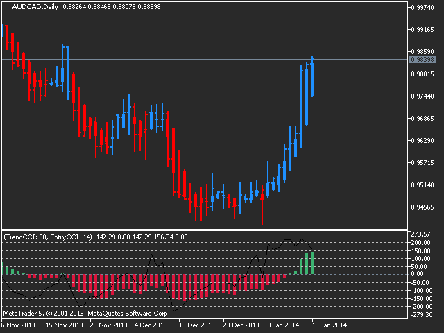 This indicator is based on simple CCI, but Alert feature has been added and CCI trend has been colored.