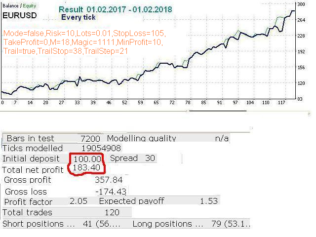 - MinProfit (10 = 0.0010) — trailing stop control parameter.