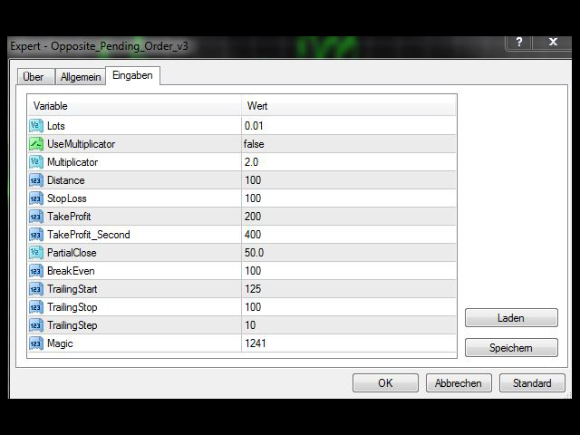 - Distance - value tells the EA how far away from the original position the opposite order should be opened ( value in points: 100 Points = 10 Pips)