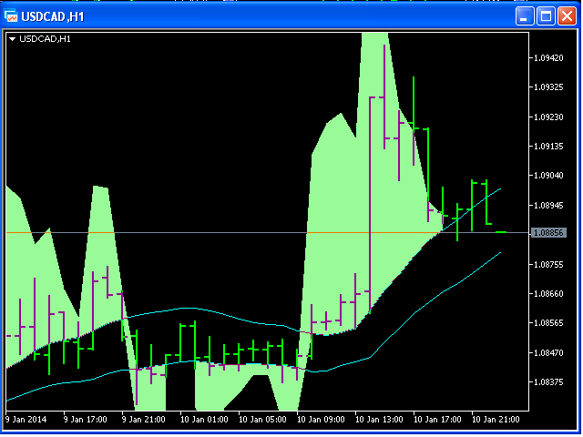The PaleGreen clouds characterize Up and Down trends. The moment a cloud appears above or under upper or lower bound is the time to enter the market.