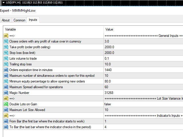 - Magic Number : this parameter identifies the order the EA is working with.