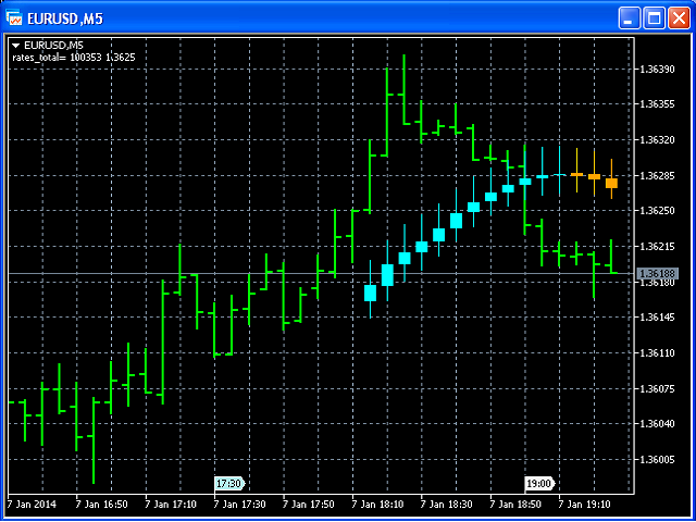 Moving Average Bars is a self-explanatory indicator with one input parameter: nPeriod.