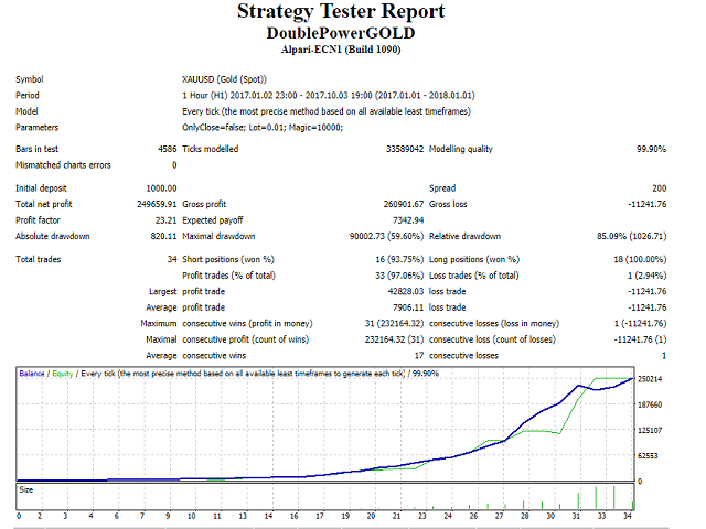 DoublePower Gold is a fully automated Forex trading Expert Advisor. The robot runs on XAUUSD H1.