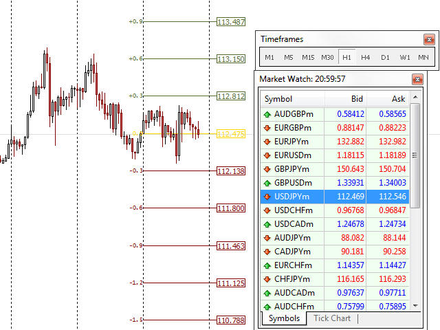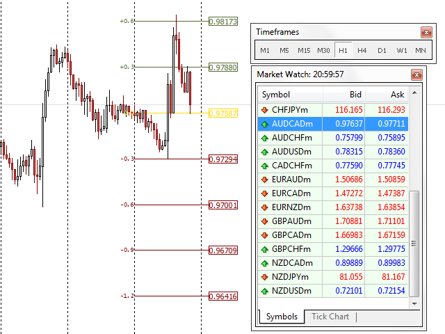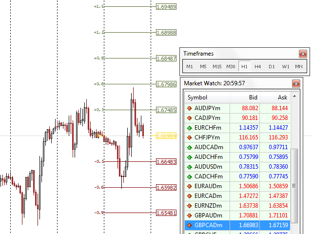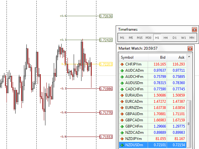 The indicator does not repaint support and resistance levels. It shows daily, weekly and monthly percentage change of previous close with respect to actual price.