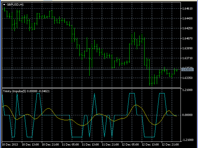 V-shaped impulse shows the time to enter the market in the opposite direction. Flat-topped impulse means it is time to enter the market in the same direction.
