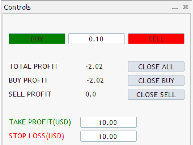 The script allows users to easily one click for adjust lot order, buy, sell and close positions if their profit/loss reaches or exceeds a value specified in USD.