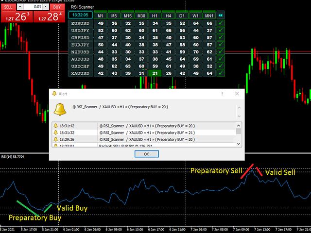 This scanner allow you to set two low levels and two high levels. The Scanner also notify traders when the set level is reached. Preparatory Buy/Sell and Valid Buy/Sell signals are sent