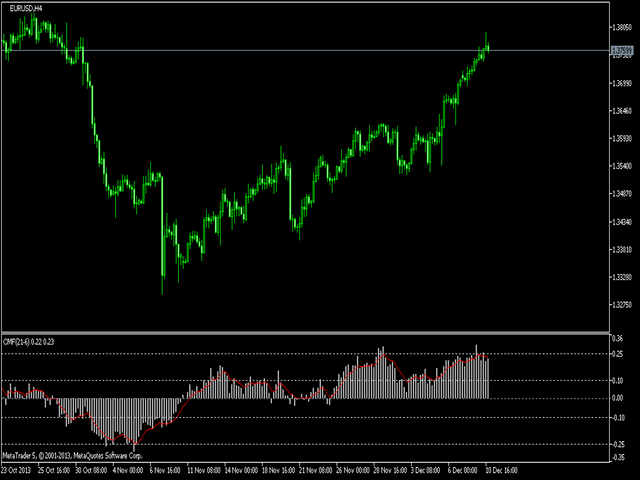 Chaikin Money Flow can be used to define a general buying or selling bias simply with positive or negative values. The indicator oscillates above/below the zero line. Generally, buying pressure is stronger when the indicator is positive and selling pressure is strong when the indicator is negative.
