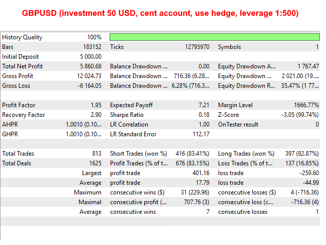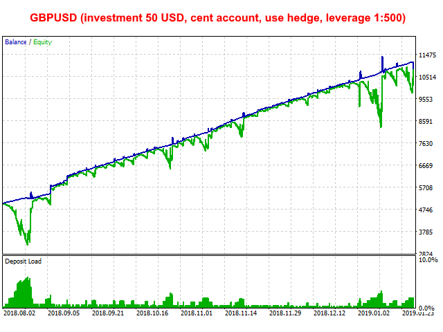 GBPUSD (investment 50 USD, cent account, use hedge, leverage 1:500)