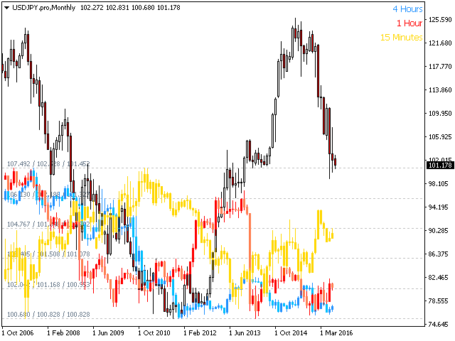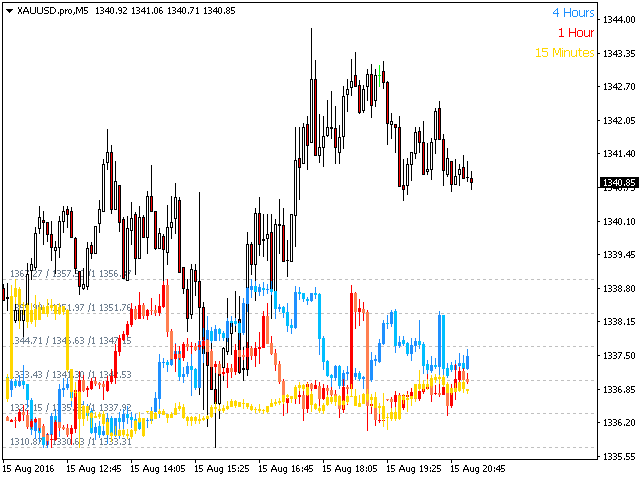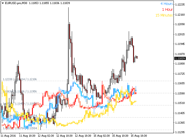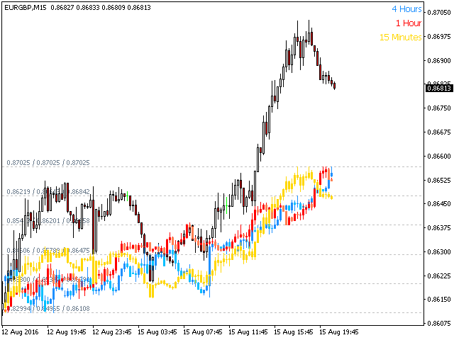- Plot up to four timeframes overlayed on the same chart