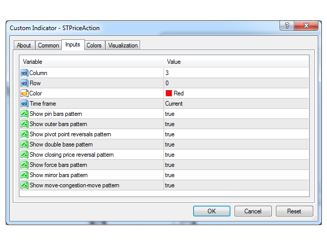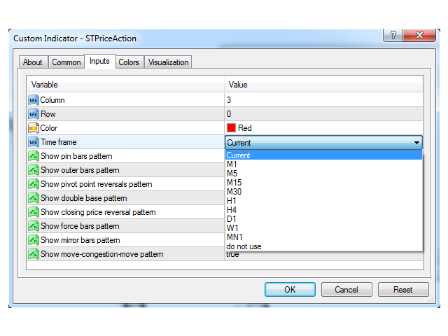 For each pattern, the indicator also shows trade direction in accordance with the classical Price Action theory. If you don't need any of the patterns, you can disable it. Additionally, you can choose the time frame the indicator will operate on. For example, while using the H1 chart, you can see Price Action patterns on H4. You can also specify the position of the indicator table on the chart, as well as font color.
