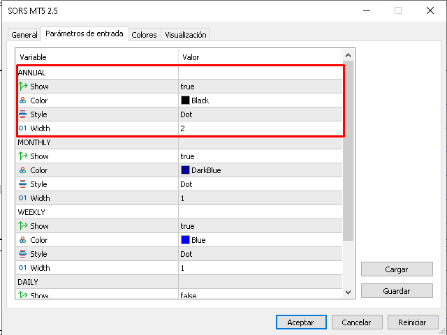 該指標旨在在圖表上繪製SORS線,這是計算通常要遵循的市場點的現代方法,它們由支撐和阻力組成,但與經典不同,它們是根據內生的波動率和標準差計算的,