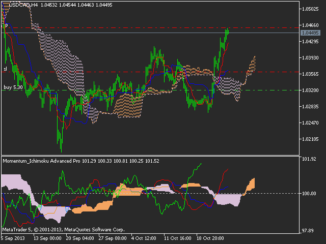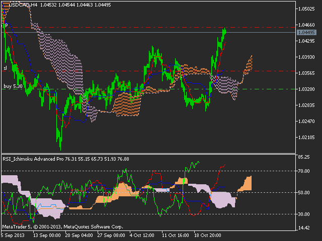 This indicator is based on the standard MT5 Ichimoku Kinko Hyo indicator but I have designed it to track the other values (RSI, CCI, Momentum, TEMA, ...) instead in a sub window.
