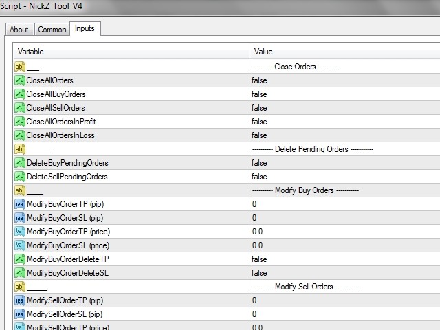 Place this script in your Scripts folder, open a chart of a specific symbol, at which you need to change current open orders or create new orders and drag and drop this script onto the chart. A popup window will open. Go to the "Inputs" tab and edit the values according to your needs. Click OK. The operations are executed immediately and the script disapears.