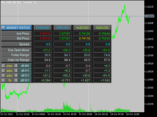 Introducing a compact and handy panel for watching the market and estimating multicurrency price movements. It shows main parameters for a user defined group of symbols in the form of a table. Its functionality is checked on Forex and FORTS.
