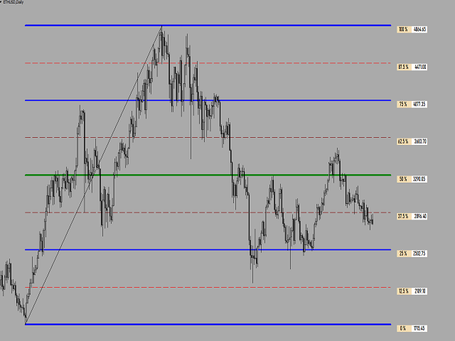 Индикатор рисует уровни Фибоначчи с выделенными Ценовыми метками.При установке индикатора на график необходимо создать трендовую линию с именем указанным в поле" Unique name of trend line to place fib on ". По умолчанию имя=" Unique name of trend line to place fib on" = "+" .В индикаторе можно заменить уровни фибоначчи по своему усмотрению.Также меняются цвет,стиль,толщина линий и т. д.