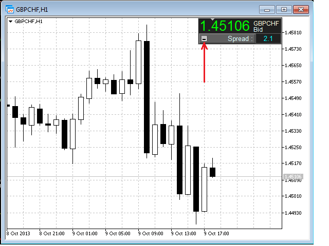 There is a button that minimizes the information displayed. Once it pressed, the panel will display only price and current spread (see an example on the pic. 2).