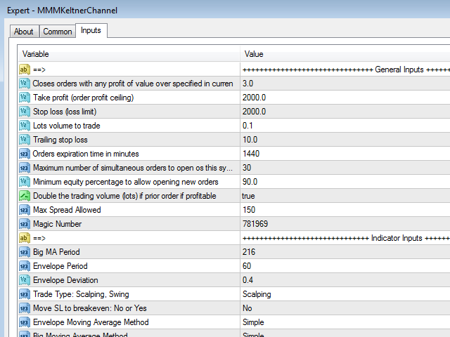 MMM Keltner Channels EA strategy: