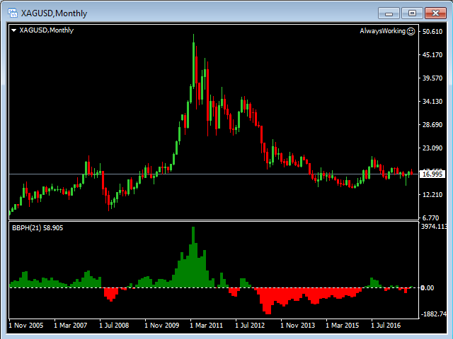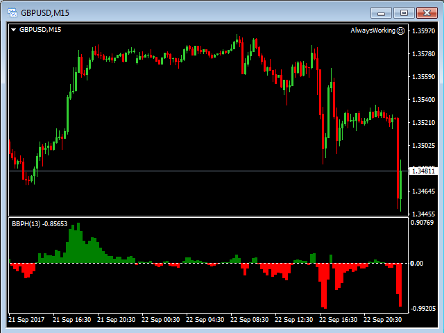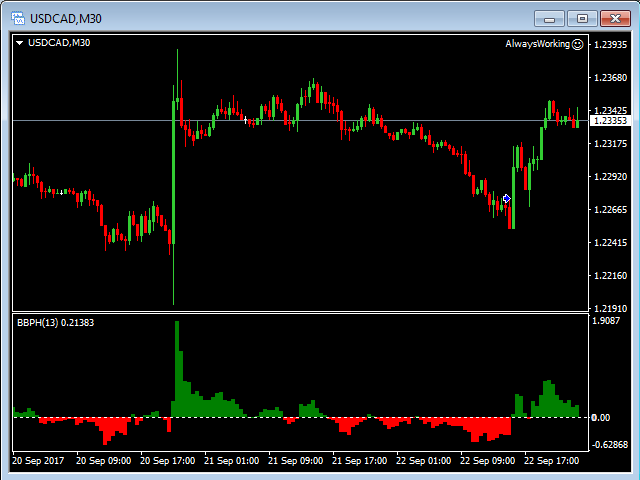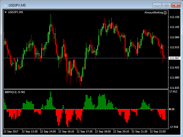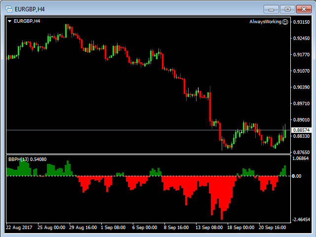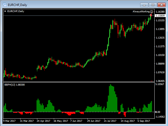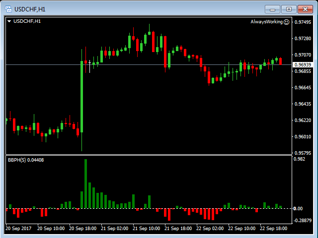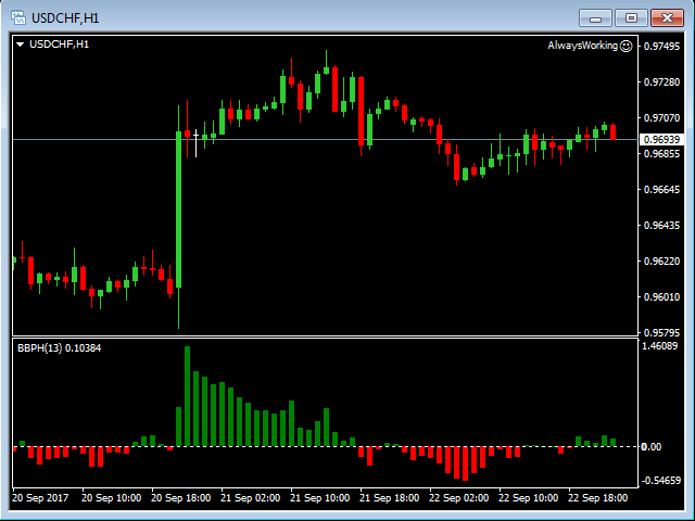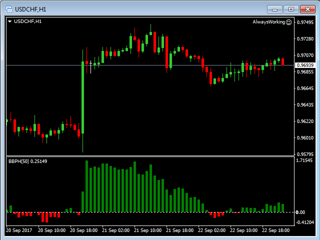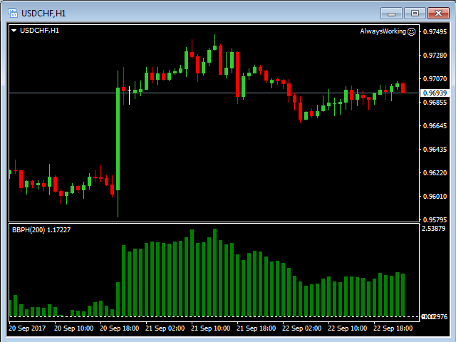 The indicator contains only one parameter: nBars - number of bars for histogram's value calculation.
