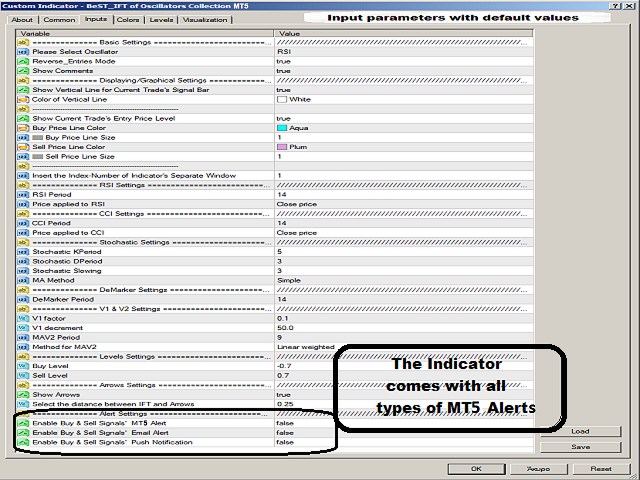 Levels Settings – for selecting the Buy and Sell trigger levels of the IFT line.