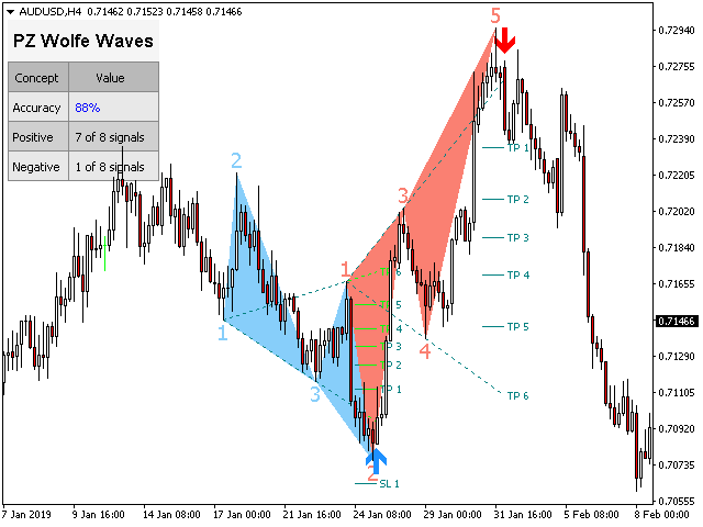 Wolfe Waves是所有金融市场中自然发生的交易模式,代表着争取均衡价格的斗争。这些模式可以在短期和长期时间内发展,并且是存在的最可靠的预测反转模式之一,通常早于强劲和长期的价格波动。
