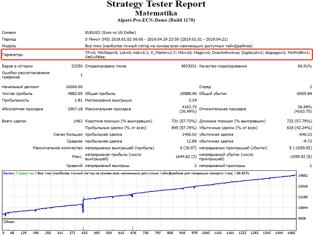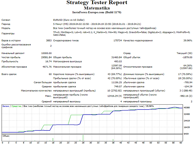 该EA是基于简单的数学。 该EA放置2多向订单进一步,无论价格去,一个订单总是在加号,第二个在减号. 如果我们平均,然后在价格的反向运动(只有少数利差),平均订单被关闭,只有有利可图的保持! 这是由于他的利润和交易。 当然,平均头寸本身也会以MinProfit为代价添加到利润银行,特别是如果您使用rebyte程序返回点差。