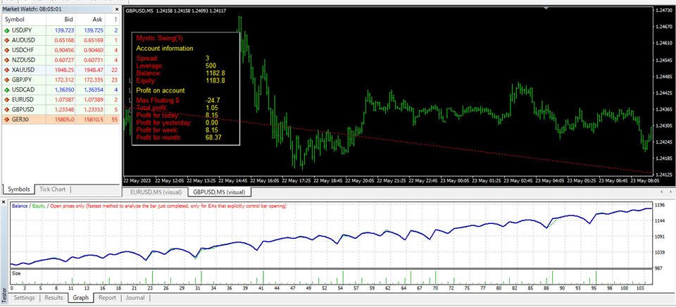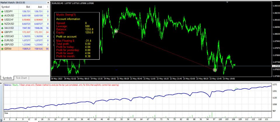 This EA has been designed to achieve stable trades regardless of market fluctuations. The optimal time frame for this EA is M5. It calculates the price changes in higher time frames, such as H1 and H4, and looks for entry points after a significant trend has occurred and the price starts to retrace.