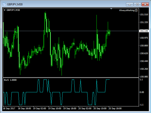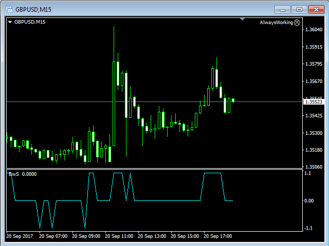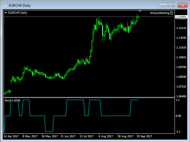 Buy Wait Sell Trigger is very easy to read and use. The one and only indicator's line (color Aqua) can be equal to a zero-line or plus/minus one-line.