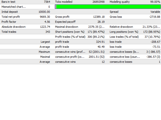 Is has been backtested for more than 1 year with real ticks data with 99% accuracy and good results on many major pairs, mainly H1 timeframe.