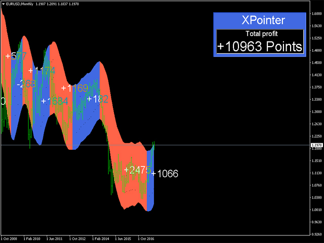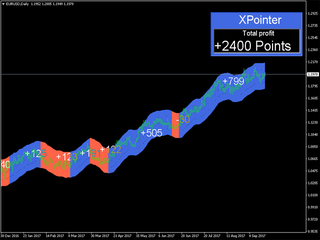 XPointer is a completely ready trading system. It shows the trader when to open and close a trade. It works on all currency pairs and all time frames. Very easy to use and does not require additional indicators for its operation. Even a beginner trader can start working with XPointer. But it will also be useful for professional traders to confirm the opening of orders.