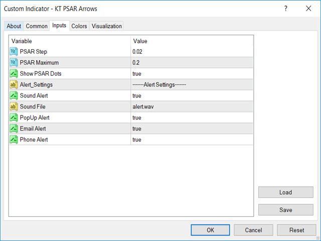 - PSAR Step: Insert the step value.