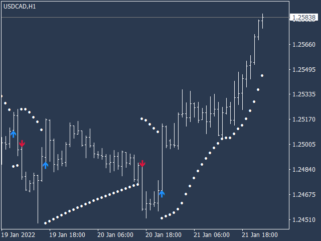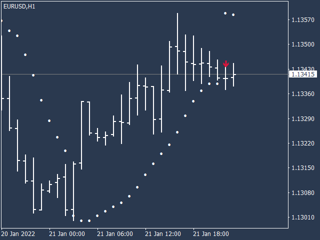 KT Psar Arrows plots the arrows on chart using the standard Parabolic SAR indicator. A bullish arrow is plotted when the candle's high touch the SAR. A bearish arrow is plotted when the candle's low touch the SAR. The signals are generated in the real-time without waiting for the bar close.