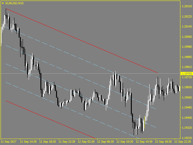 By default, the indicator plots the main line of the linear regression, the upper and lower boundaries of the channel, as well as 4 additional lines for separation into zones. In addition, up to 14 lines can be enabled.
