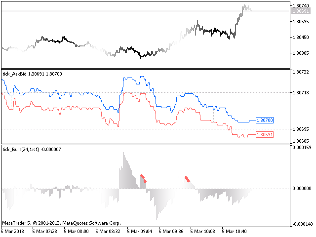 The Bulls Power indicator drawn using a tick chart.