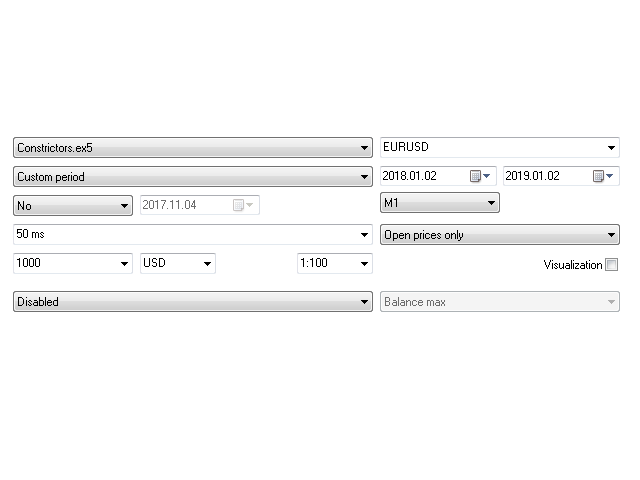 Professional Constrictors Expert Advisor follows the market using the Parabolic Stop and Reverse system indicator. At each Parabolic SAR indicator signal, a position is opened in the direction approaching the indicator. In case of an opposite signal, a new position closing the previous one is opened (in other words, positions are opened and closed partially). Thus, the EA constantly follows the price.