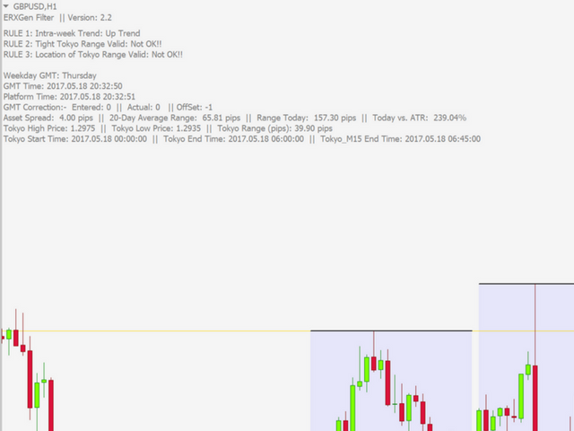 - ShowComments – if TRUE, this displays comments on the chart showing information to support decisions, e.g. current indicator version, Weekday, Tokyo High Price, Tokyo Low Price, actual GMT and correction hours entered, etc.
