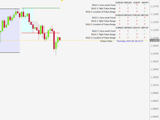 - Location of the Tokyo Range (price action during the Tokyo session must happen either at the top or bottom of the previous day's range)