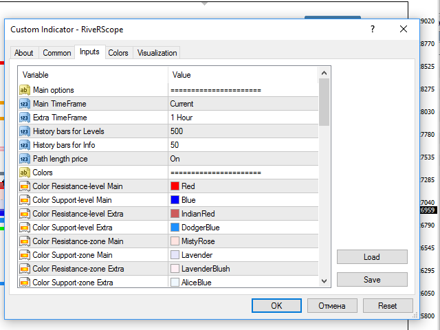 - History bars for Levels – the number of bars to calculate the support and resistance areas (500 recommended)