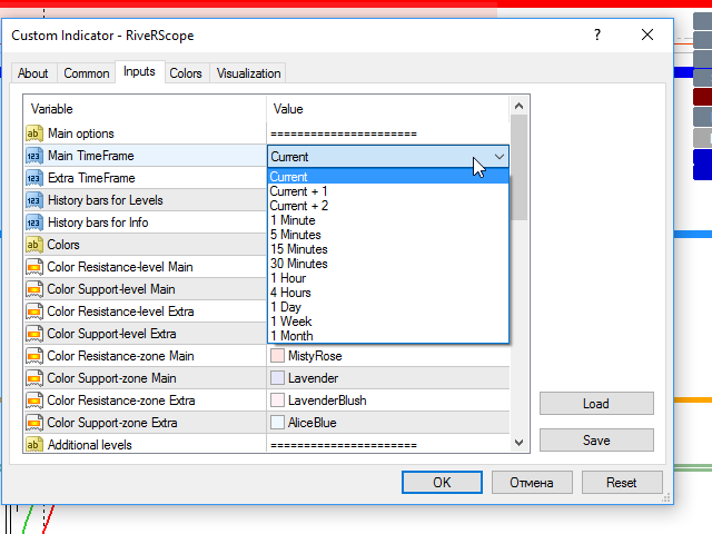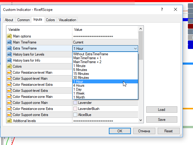 - in the lite version, the timeframes for calculating the main and additional support and resistance zones are fixed