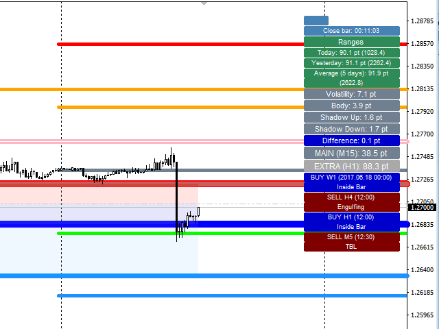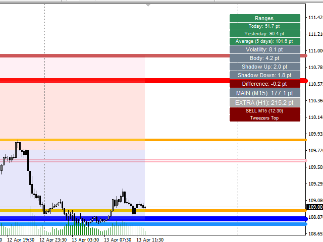 - information of the price movement: ranges and path passed during the current day, the previous day and average for 5 days