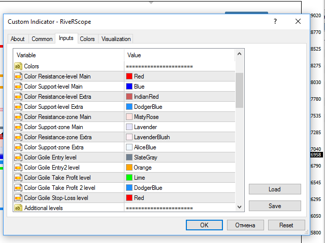 - Color Resistance-level Main - the color of the MAIN resistance level