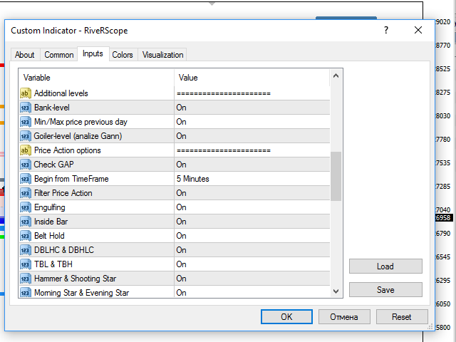 RiverScope Lite automatically determines the nearest most important price levels and support and resistance zones in history, it also identifies a large number of price action patterns (the lite version is limited to 10, while the full version has 30+).