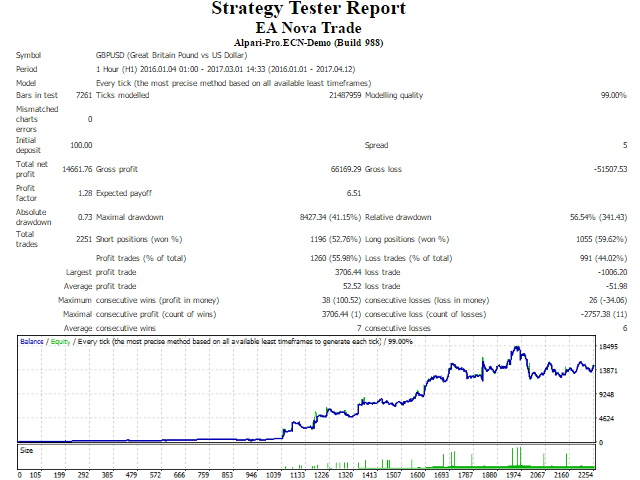 It was backtested and optimized using real ticks with 99,9% quality.