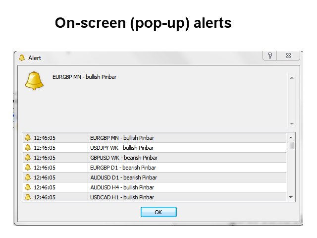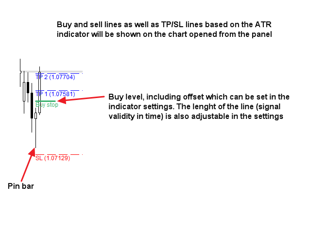 - 可以监控从 M1 到 MN 的每个时间范围,并在识别出 pin bar 时向您发送实时警报。支持所有 Metatrader 原生警报类型。